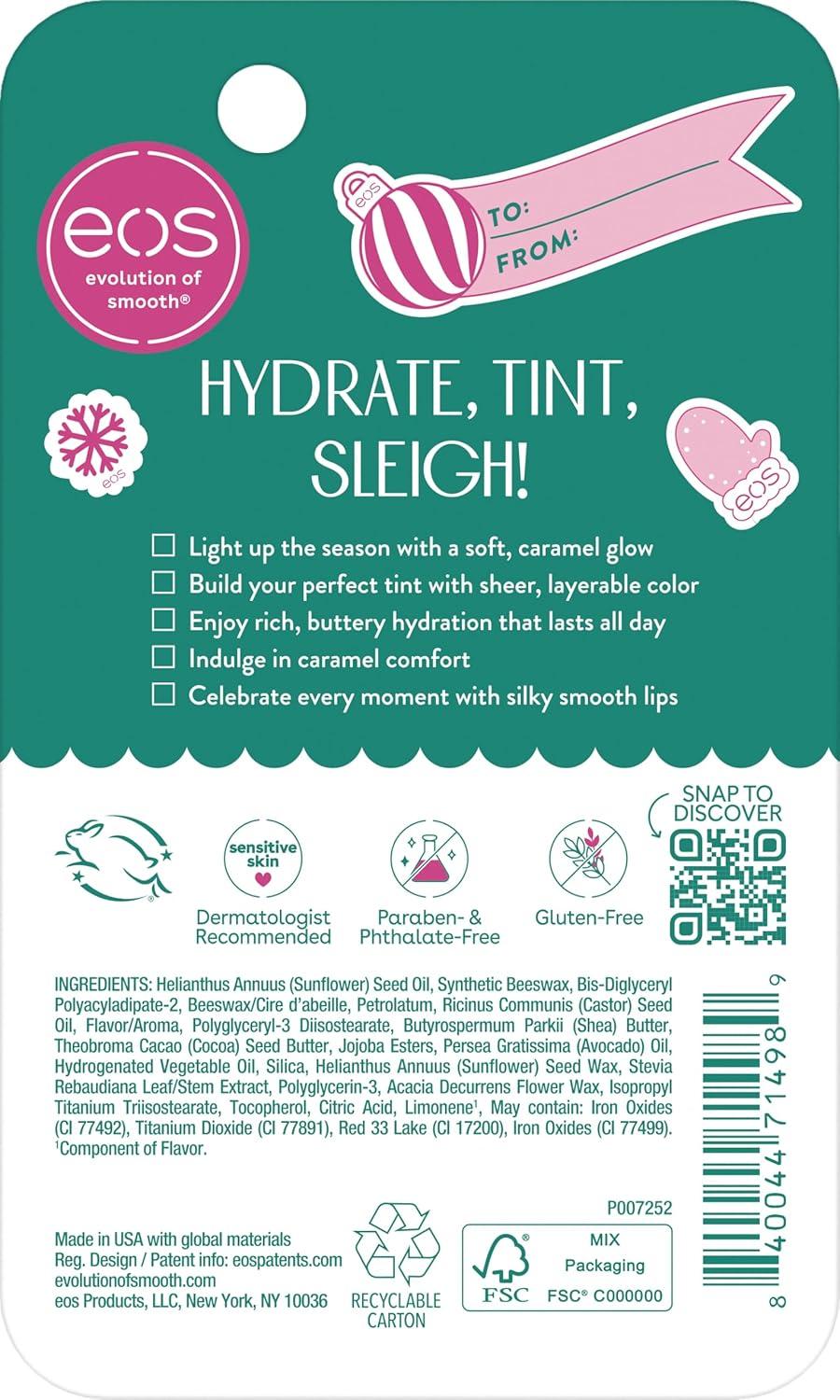 Hydrate, Tint, Sleigh! Light up the season with eos Salted Caramel Super Balm Tint, a universal beige-brown shade that delivers buttery hydration and a sheer caramel glow. This creamy, buildable formula hugs lips with rich moisture from shea, cocoa, and avocado butters, while enhancing your natural tone with a subtle wash of color. The sweet flavor of creamy sea salt caramel drizzle and vanilla milk makes every swipe feel like a warm treat. Inclusive, effortless, and ready for any holiday moment.